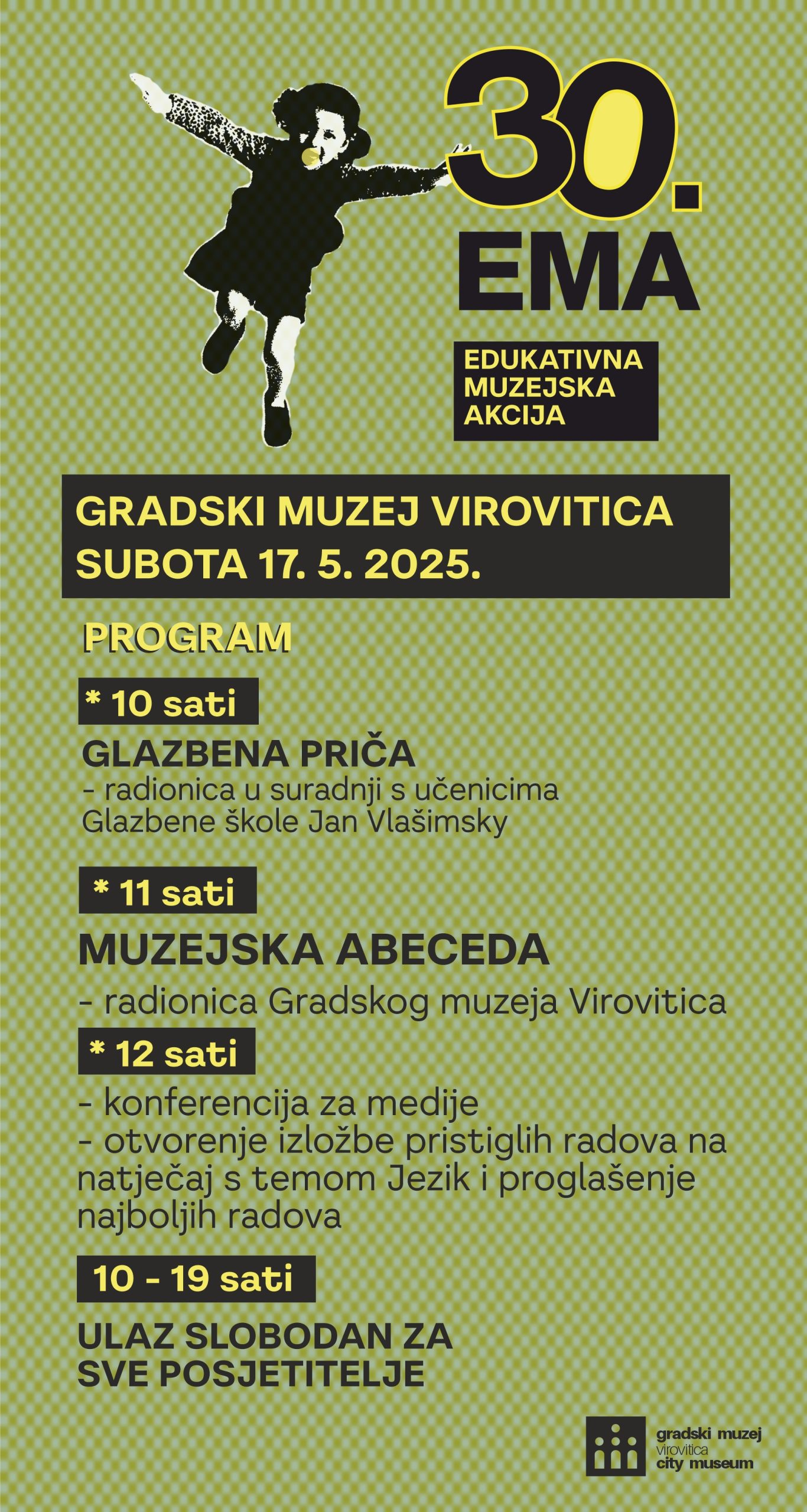 Domaćin ovogodišnje 30. EMA-e je Gradski muzej Virovitica s temom “Jezik “, a voditeljica akcije je muzejska pedagoginja Gradskog muzeja Virovitica Anja Brabec Žeravica.